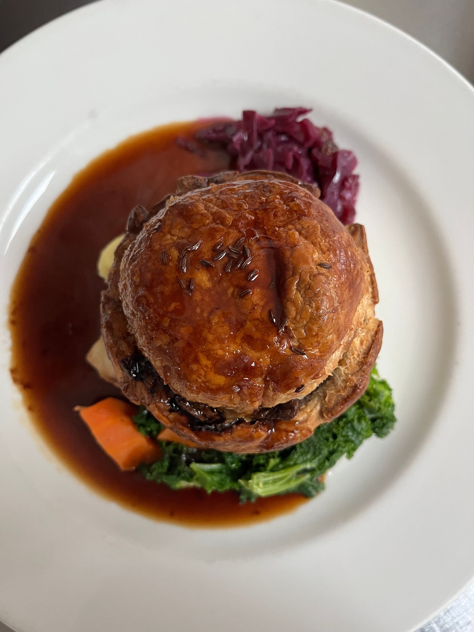 Crown Inn roast meat with lashings of gravy and veg assortment