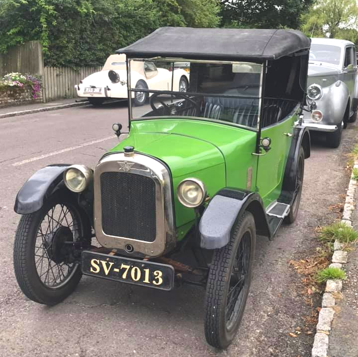 West Sussex vintage car raleigh at award winning Crown Inn Pub